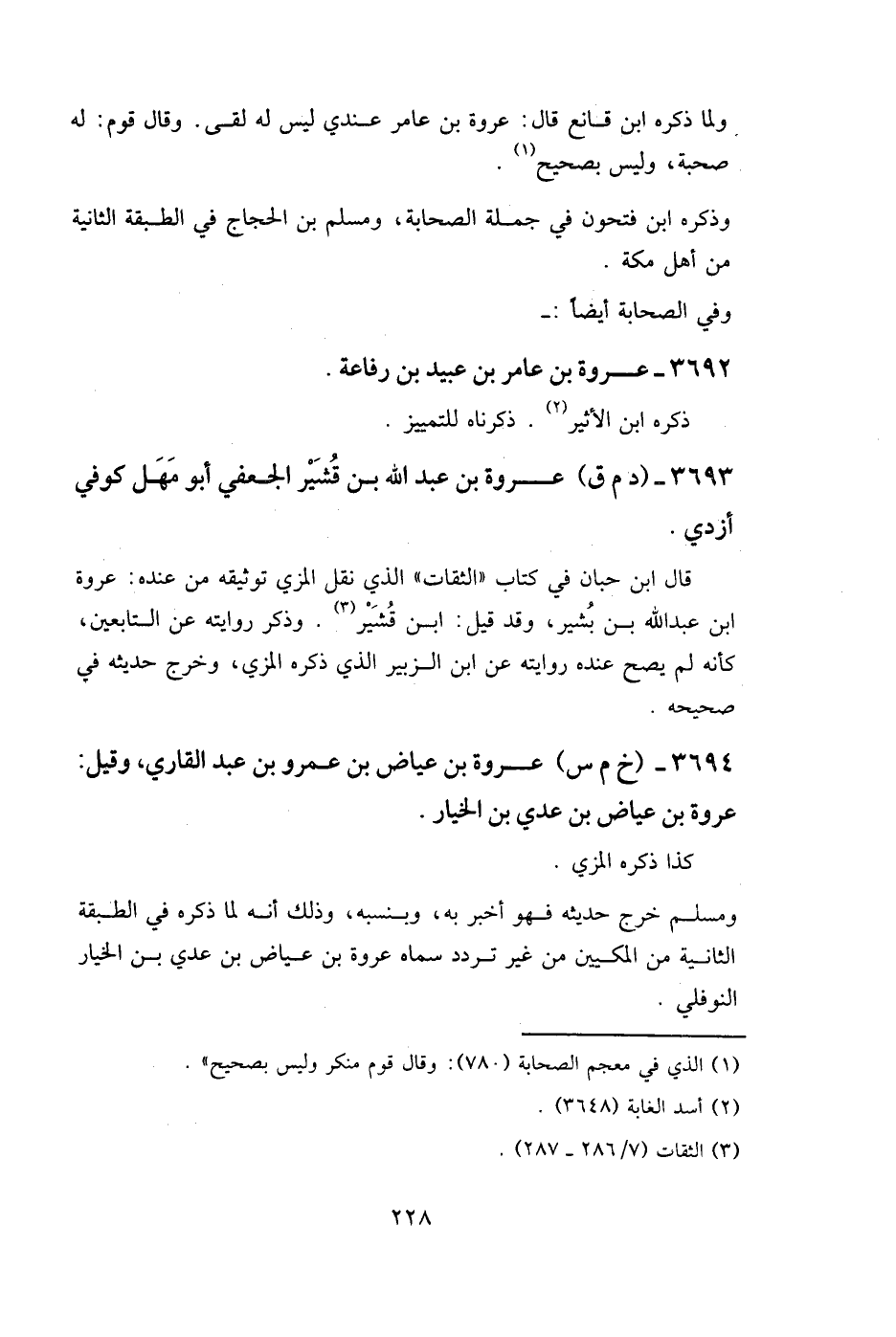3692 - عروة بن عامر بن عبيد بن رفاعة.