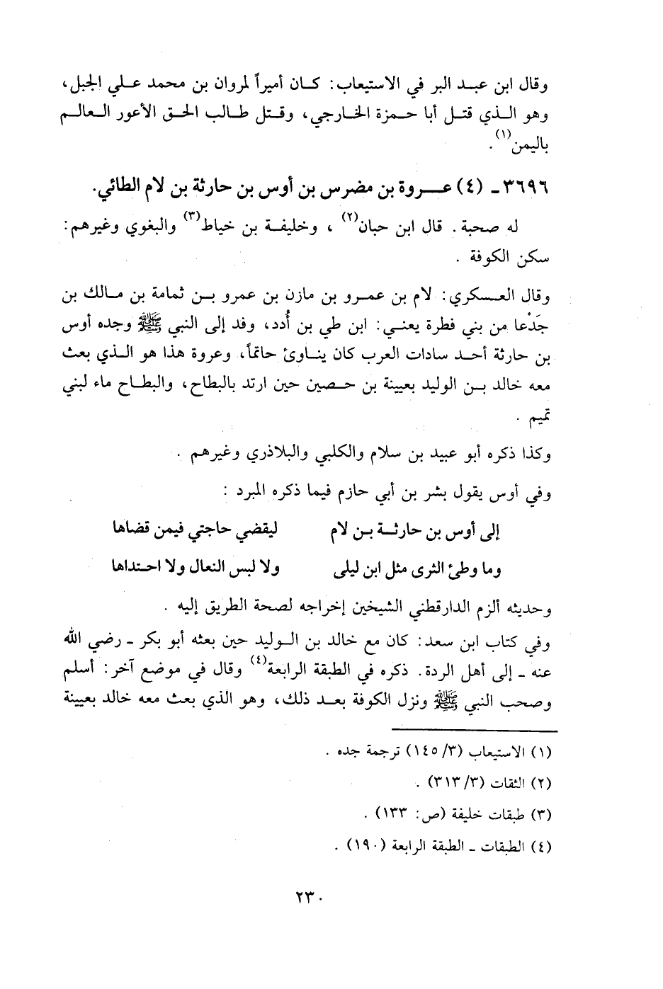3696- (4) عروة بن مضرس بن أوس بن حارثة بن لام الطائي.