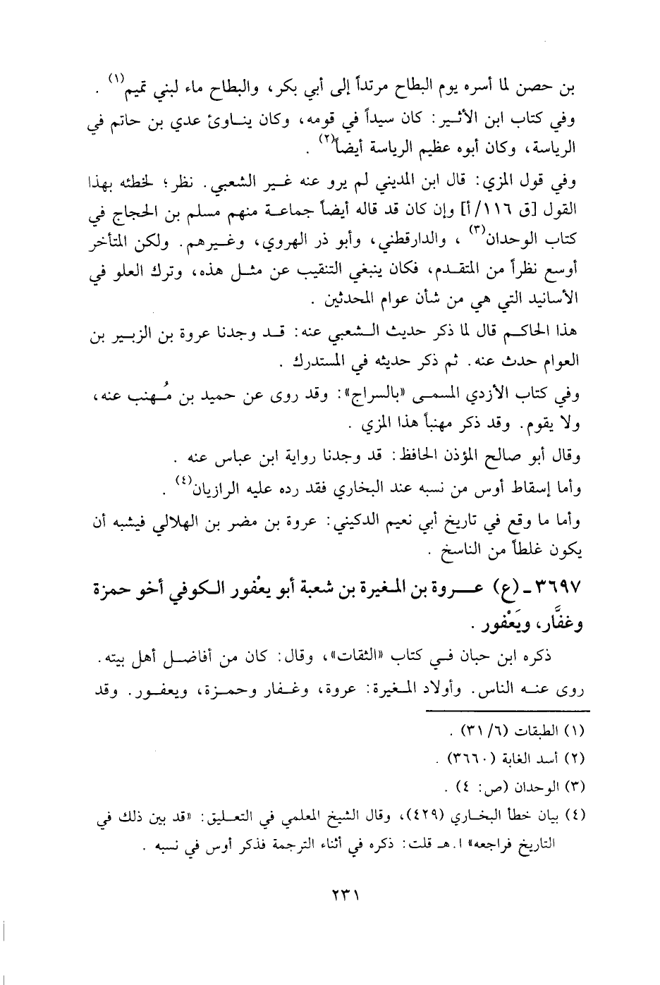 3697- (ع) عروة بن المغيرة بن شعبة أبو يعفور الكوفي أخو حمزة وغفار، ويعفور.