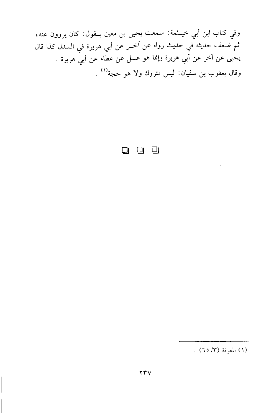 وفي كتاب ابن أبي خيثمة: سمعت يحيى بن معين يقول: كان يروون عنه، ثم ضعف حديثه في حديث رواه عن آخر عن أبي هريرة في السدل كذا قال يحيى عن آخر عن أبي هريرة، وإنما هو عسل عن عطاء عن أبي هريرة.