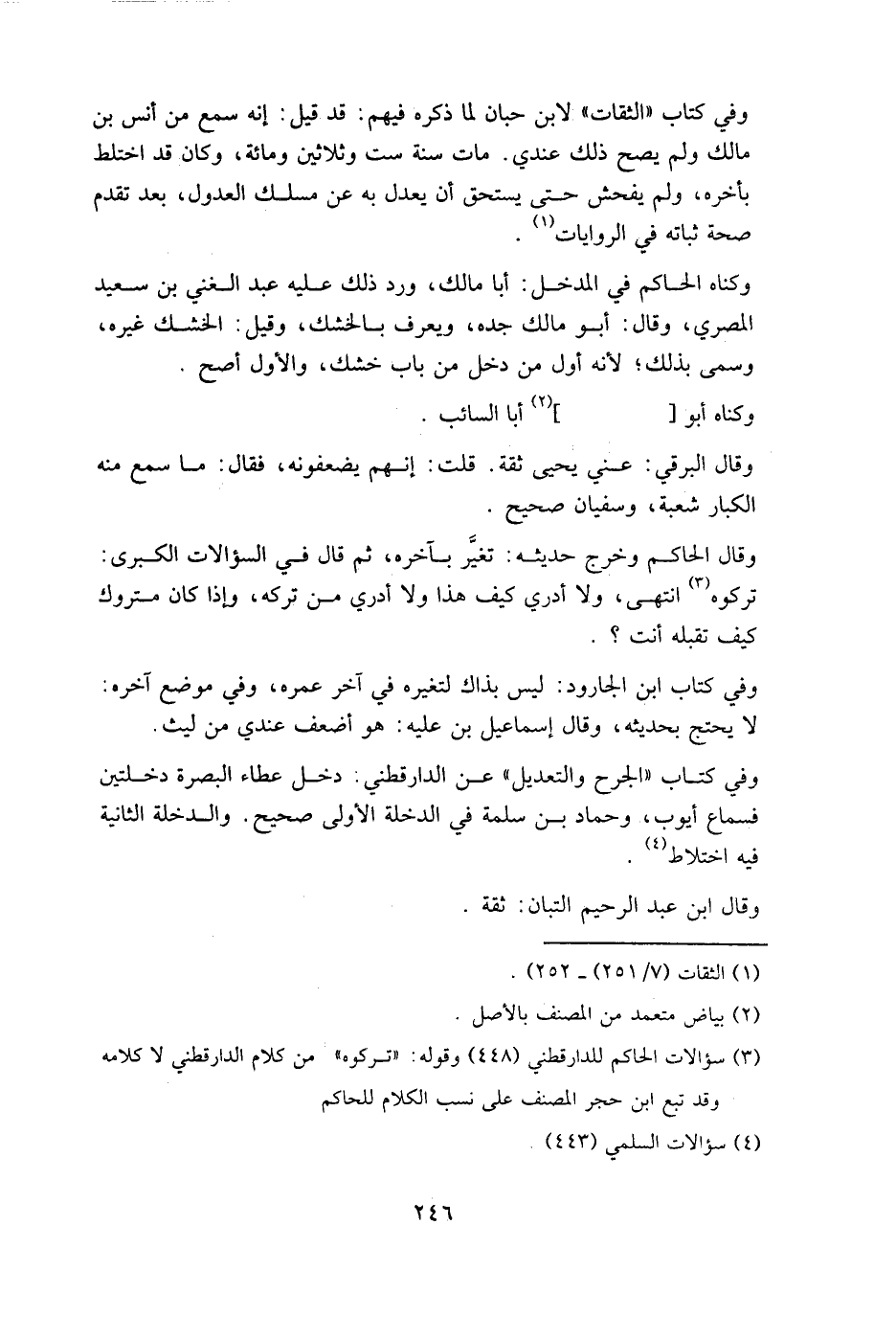 وفي كتاب "الجرح والتعديل " عن الدارقطني: دخل عطاء البصرة دخلتين فسماع أيوب، وحماد بن سلمة في الدخلة الأولى صحيح، والدخلة الثانية فيه اختلاط.