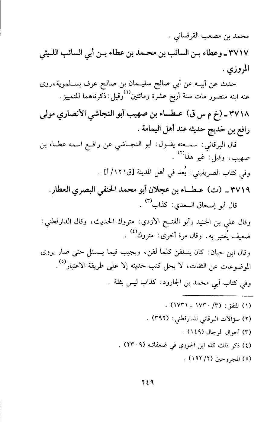 3718- (خ م س ق) عطاء بن صهيب أبو النجاشي الأنصاري مولى رافع بن خديج حديثه عند أهل اليمامة.
