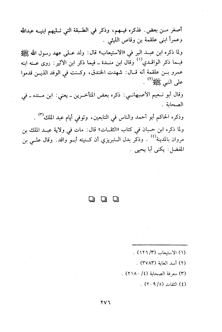 أصغر من بعض. فذكره فيهم، وذكر في الطبقة التي تليهم ابنيه عبد الله وعمرا ابني علقمة بن وقاص الليثي.