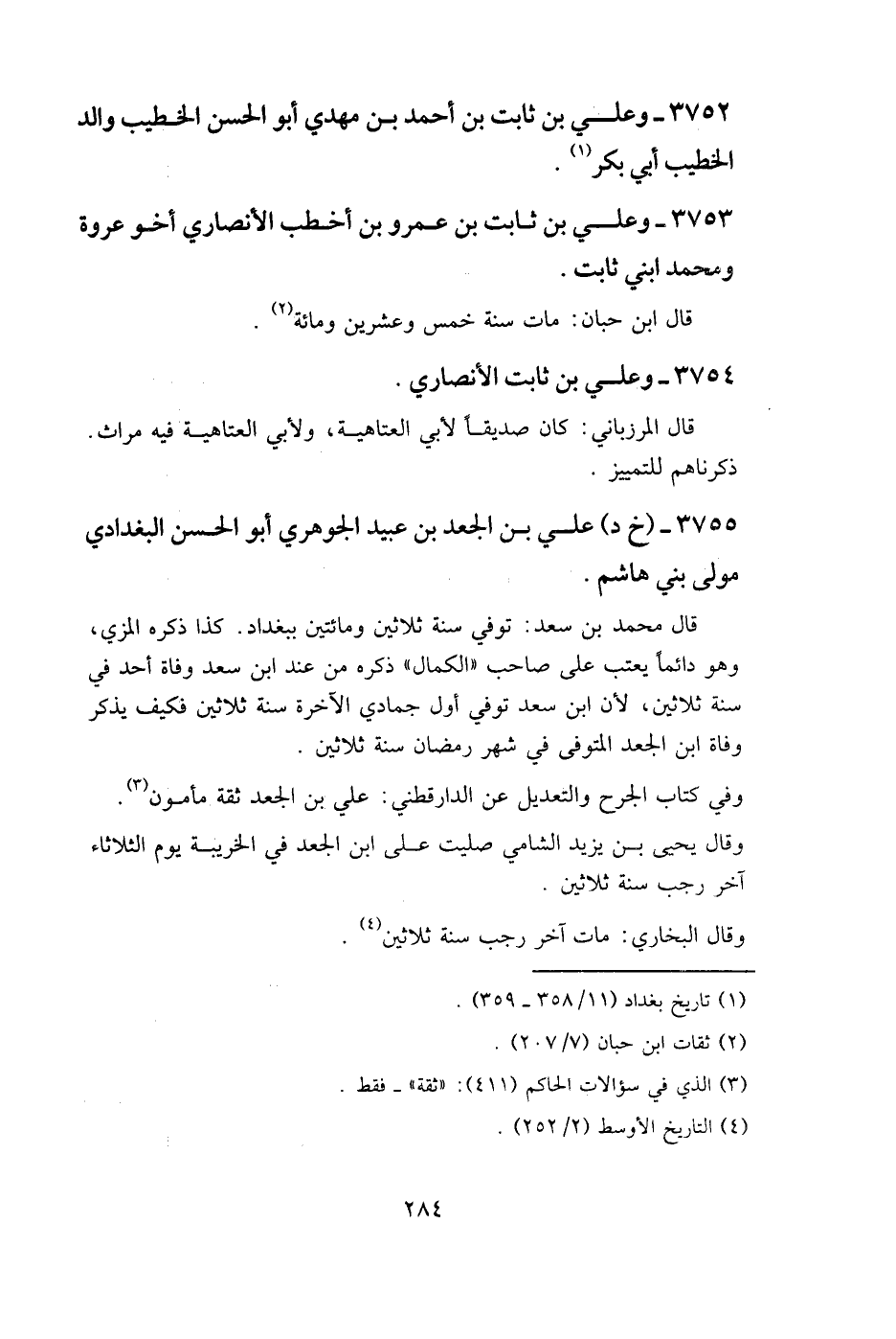 3755- (خ د) علي بن الجعد بن عبيد الجوهري أبو الحسن البغدادي مولى بني هاشم.