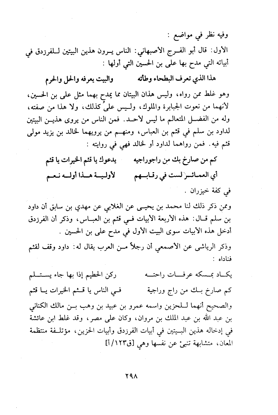 الأول: قال أبو الفرج الأصبهاني: الناس يرون هذين البيتين للفرزدق في أبياته التي مدح بها علي بن الحسين التي أولها: