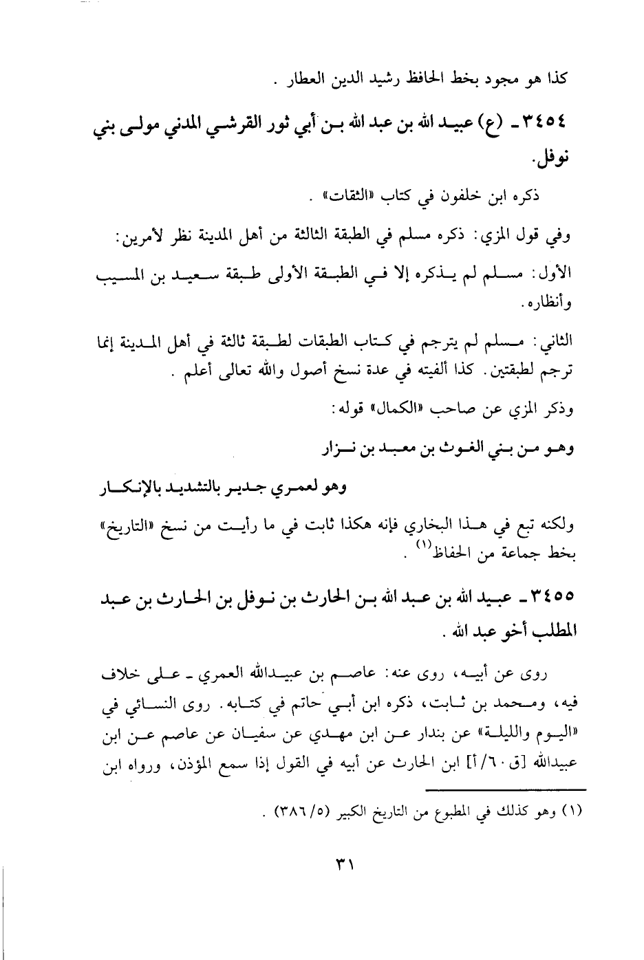 الثاني: مسلم لم يترجم في كتاب الطبقات لطبقة ثالثة في أهل المدينة إنما ترجم لطبقتين. كذا ألفيته في عدة نسخ أصول والله تعالى أعلم.