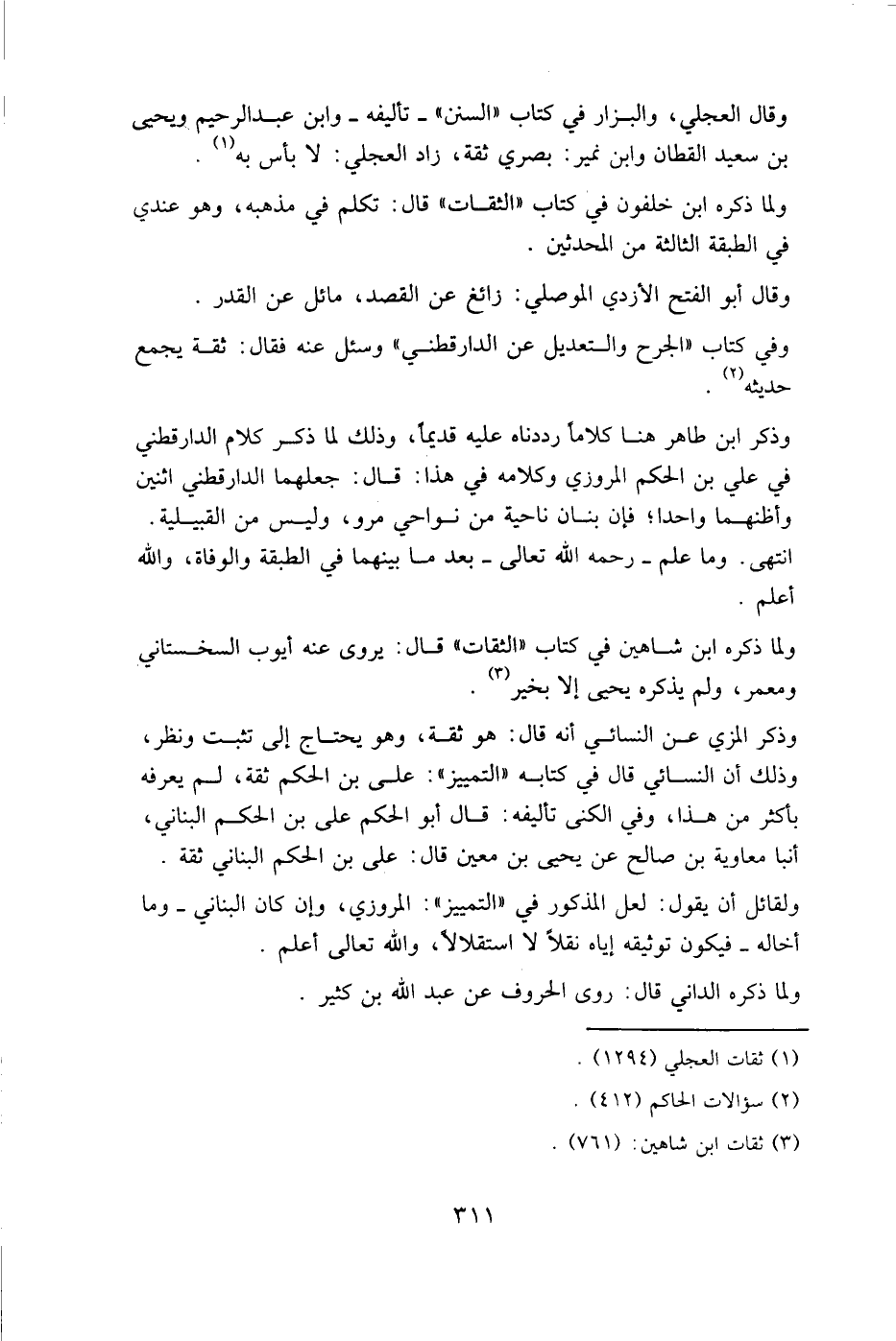 وقال العجلي، والبزار في كتاب "السنن " - تأليفه - وابن عبد الرحيم ويحيى بن سعيد القطان وابن نمير: بصري ثقة، زاد العجلي: لا بأس به.