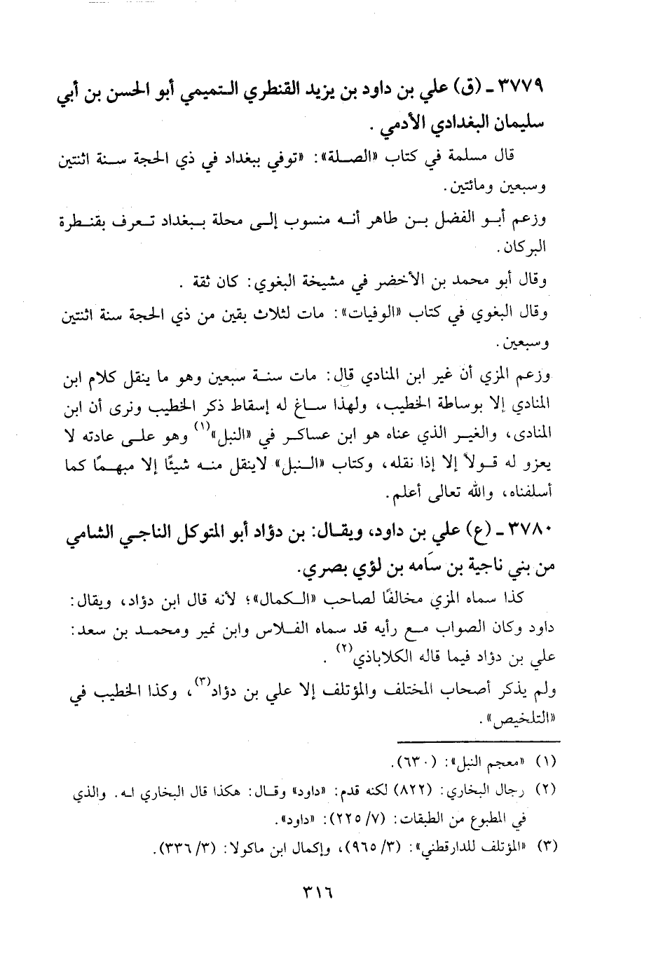 ولم يذكر أصحاب المختلف والمؤتلف إلا علي بن دؤاد، وكذا الخطيب في "التلخيص.