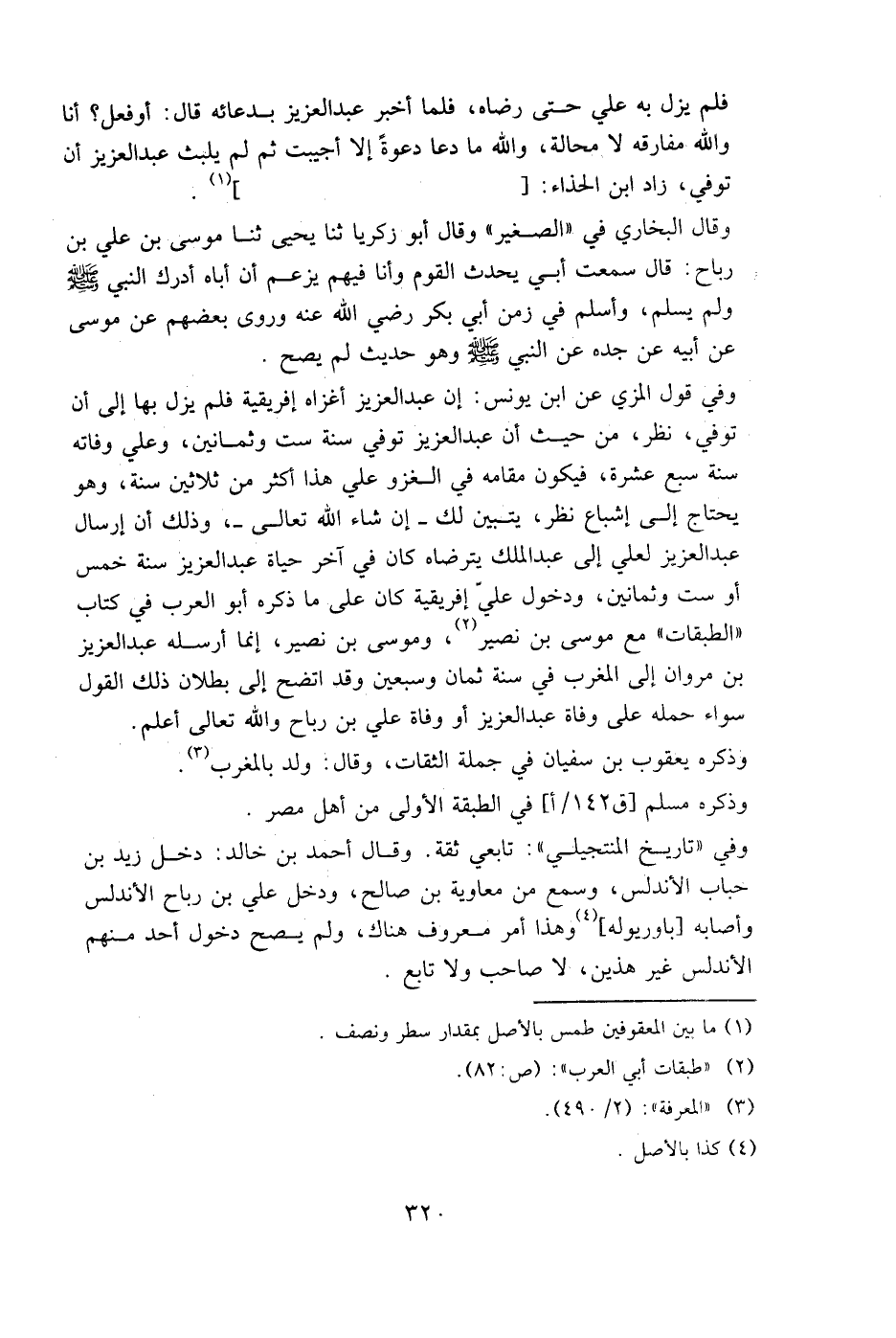 وفي قول المزي عن ابن يونس: إن عبد العزيز أغزاه إفريقية، فلم يزل بها إلى أن توفي، نظر، من حيث أن عبد العزيز توفي سنة ست وثمانين، وعلي وفاته سنة سبع عشرة، فيكون مقامه في الغزو على هذا أكثر من ثلاثين سنة، وهو يحتاج إلى إشباع نظر، يتبين لك إن شاء الله تعالى، وذلك أن إرسال عبد العزيز لعلي إلى عبد الملك يترضاه كان في آخر حياة عبد العزيز سنة خمس أو ست وثمانين، ودخول علي إفريقية كان على ما ذكره أبو العرب في كتاب "الطبقات " مع موسى بن نصير، وموسى بن نصير إنما أرسله عبد العزيز بن مروان إلى المغرب في سنة ثمان وسبعين، وقد اتضح إلى بطلان ذلك القول، سواء حمله على وفاة عبد العزيز أو وفاة علي بن رباح والله تعالى أعلم.