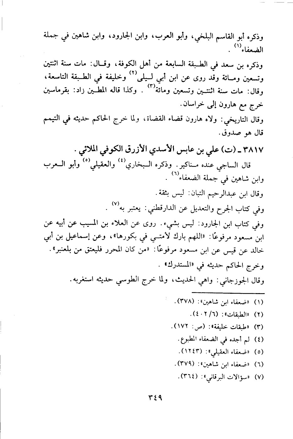 3817- (ت) علي بن عابس الأسدي الأزرق الكوفي الملائي.