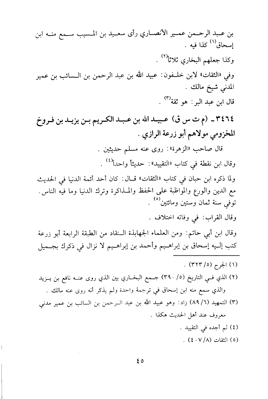 3464- (م ت س ق) عبيد الله بن عبد الكريم بن يزيد بن فروخ المخزومي مولاهم أبو زرعة الرازي.