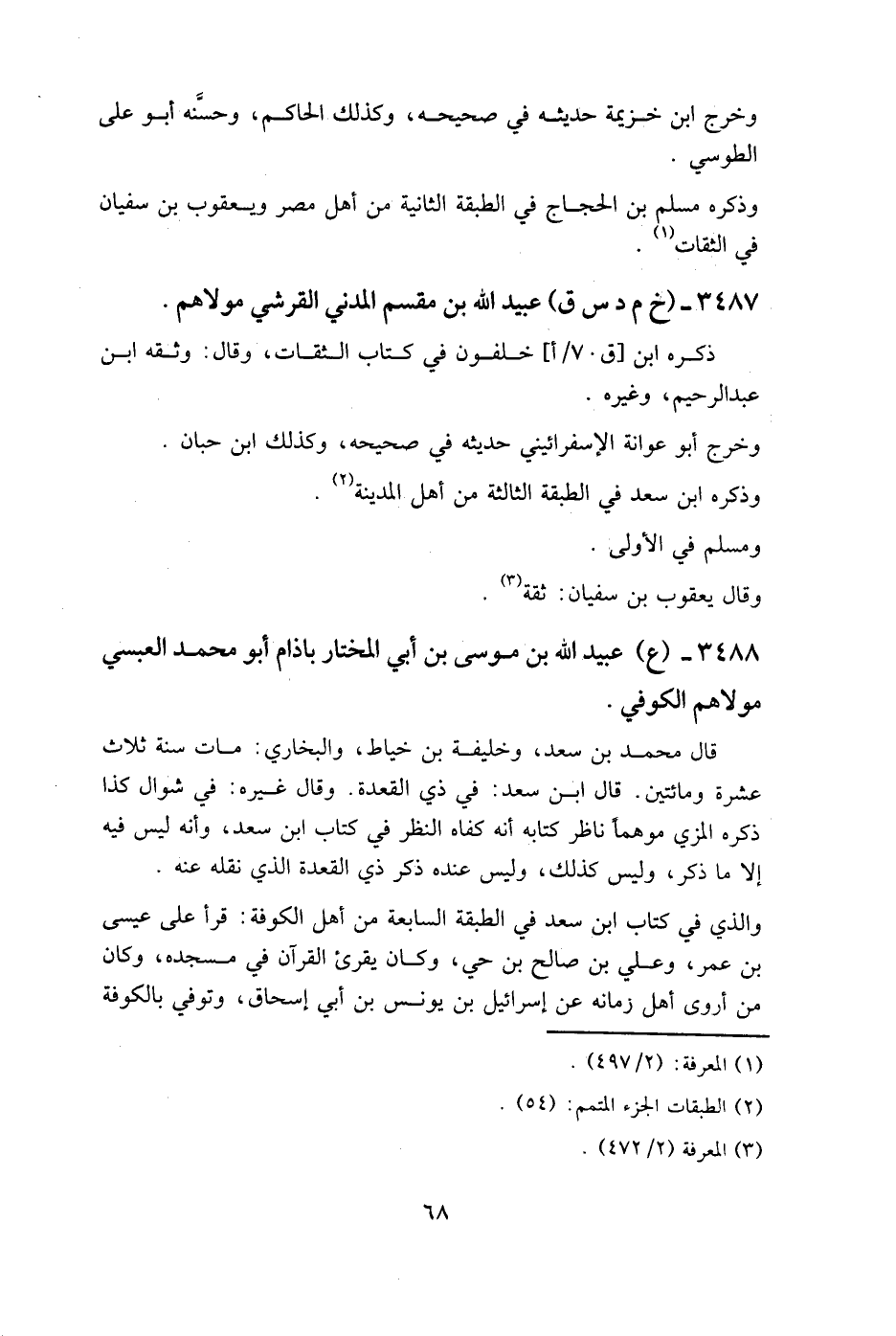 3488- (ع) عبيد الله بن موسى بن أبي المختار باذام أبو محمد العبسي مولاهم الكوفي.