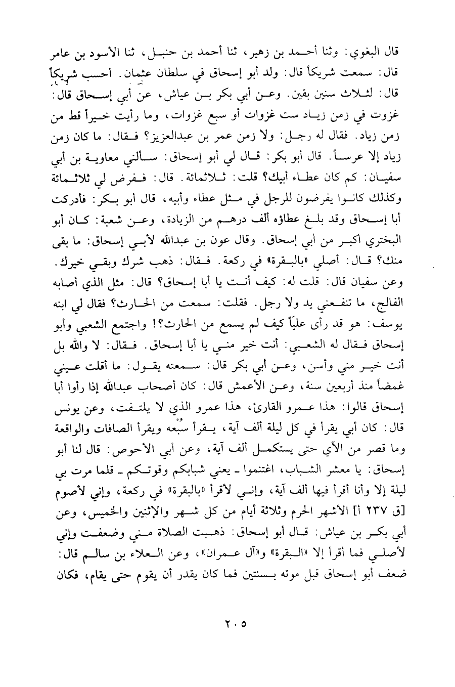 وعن أبي بكر بن عياش: قال أبو إسحاق: ذهبت الصلاة مني وضعفت وإني لأصلي فما أقرأ إلا " البقرة" و "آل عمران"،