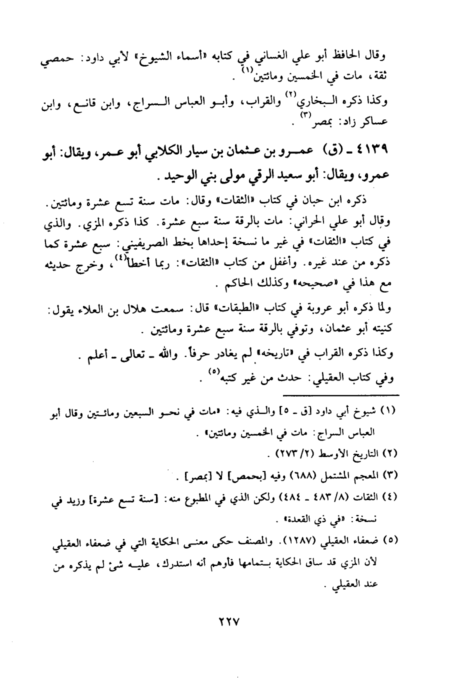 4139- (ق) عَمرو بن عثمان بن سيار الكلابي أبو عمر، ويقال: أبو عمرو، ويقال: أبو سعيد الرقي مولى بني الوحيد.