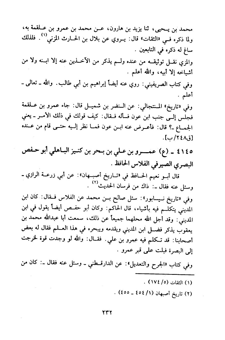 4145- (ع) عَمرو بن علي بن بحر بن كنيز الباهلي أبو حفص البصري الصيرفي الفلاس الحافظ.