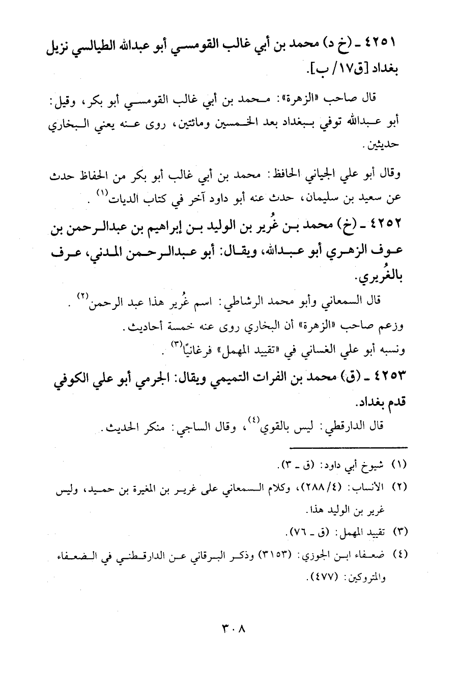 4251- (خ د) محمد بن أبي غالب القومسي أبو عبد اللّه الطيالسي نزيل بغداد [ق 17/ب].
