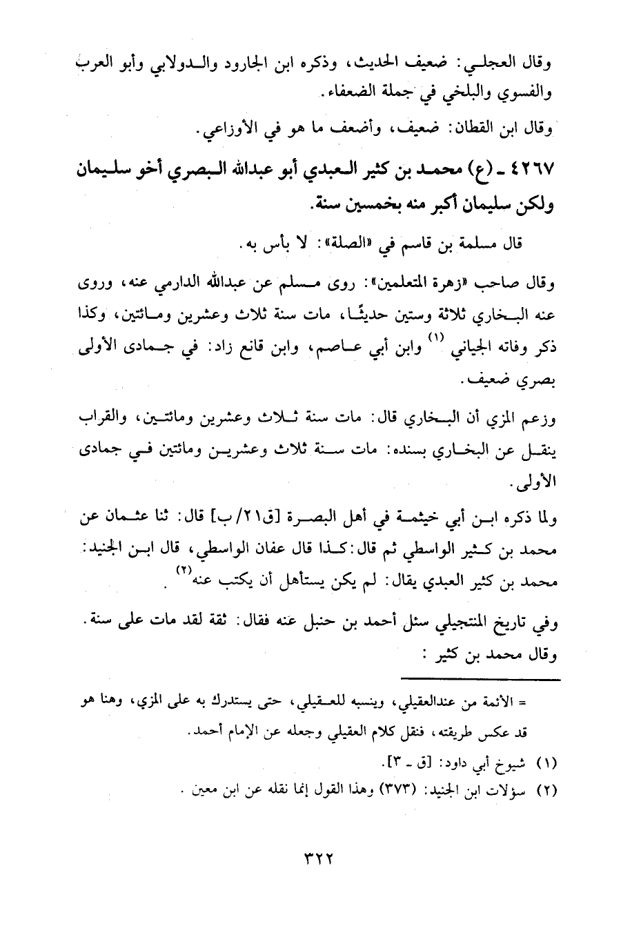 4267- (ع) محمد بن كثير العبدي أبو عبد الله البصري أخو سليمان ولكن سليمان أكبر منه بخمسين سنة.