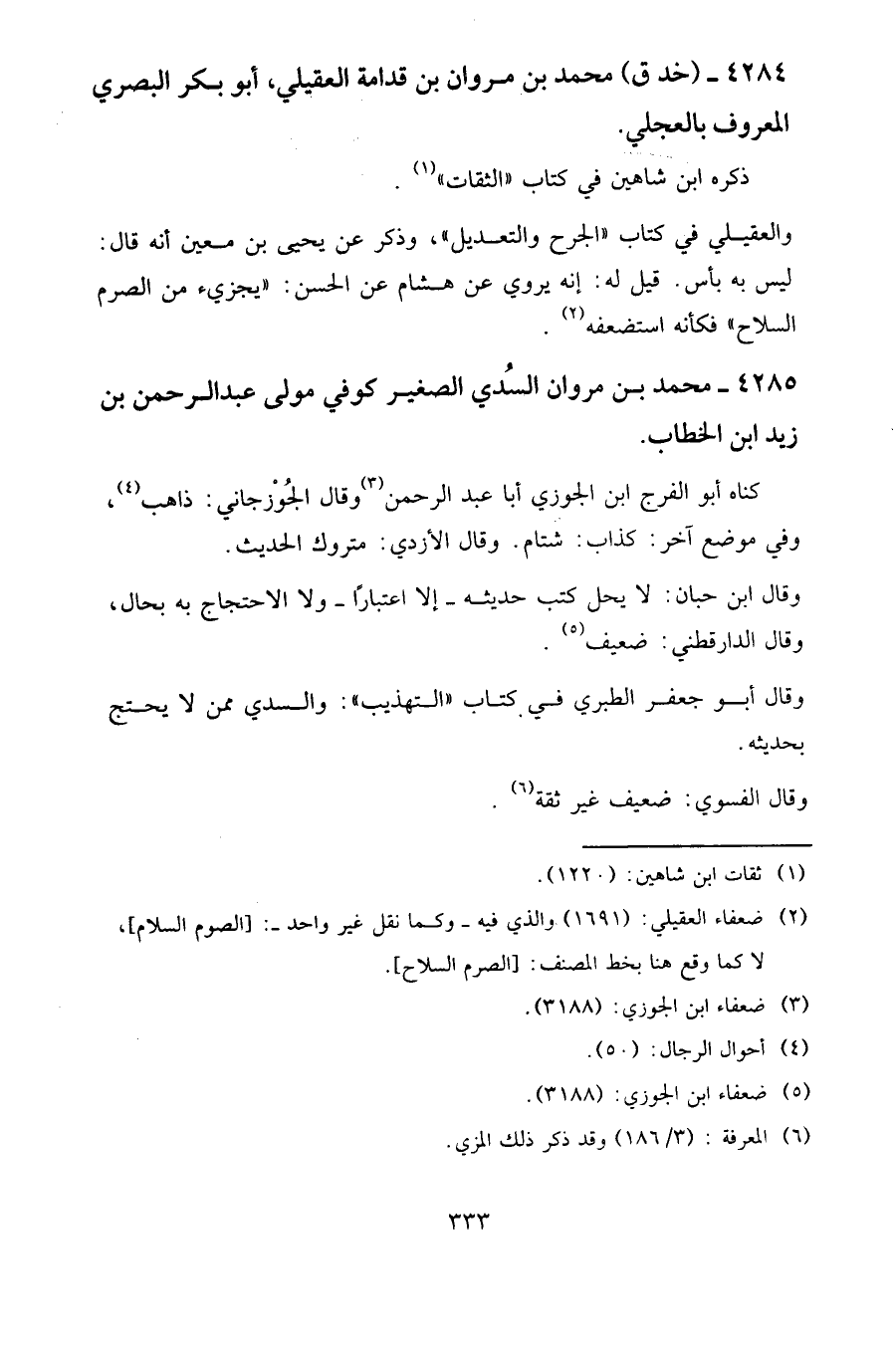 4285- محمد بن مروان السدي الصغير كوفي مولى عبد الرحمن بن زيد ابن الخطاب.
