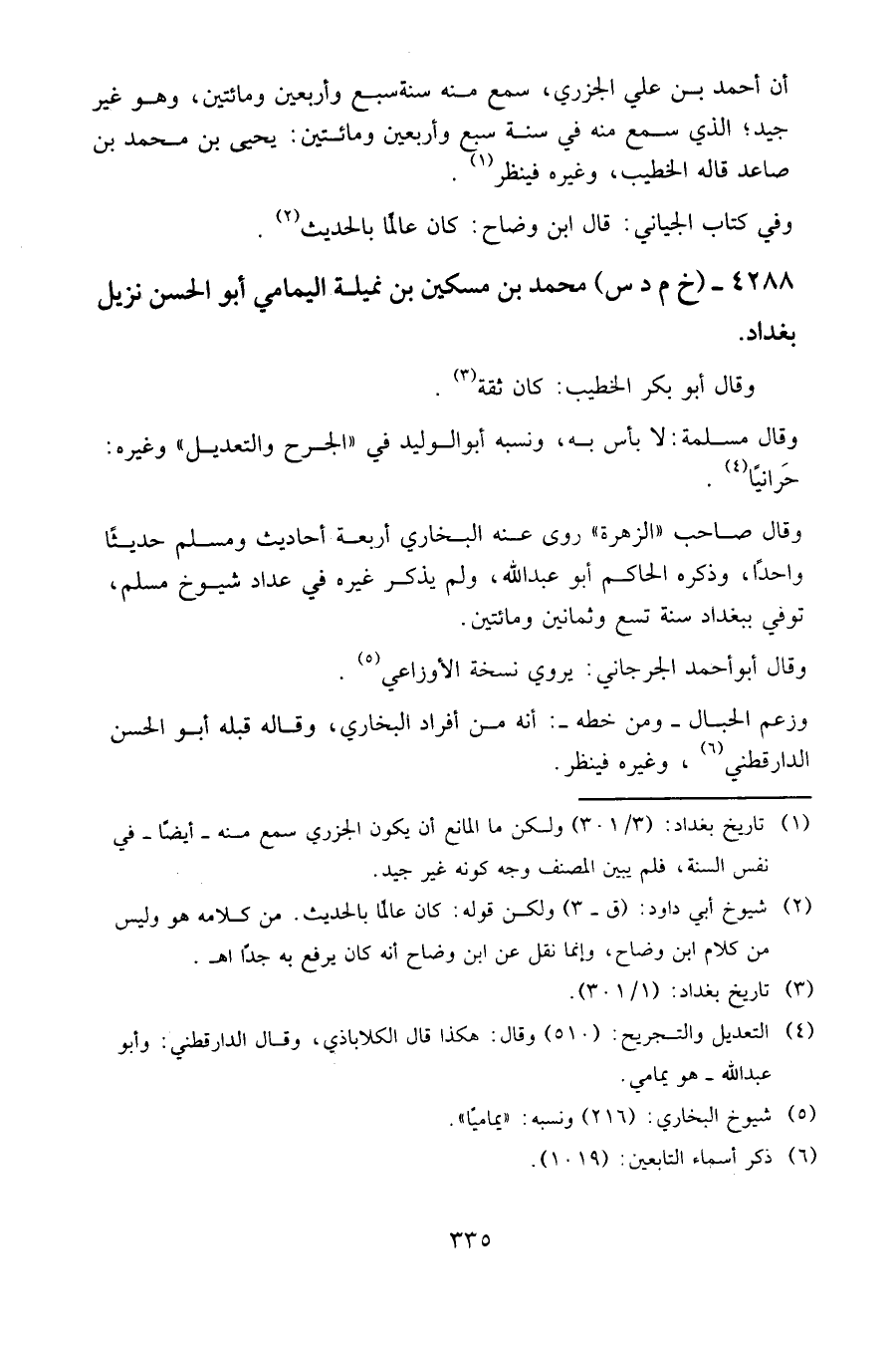 4288- (خ م د س) محمد بن مسكين بن نميلة اليمامي أبو الحسن نزيل بغداد.