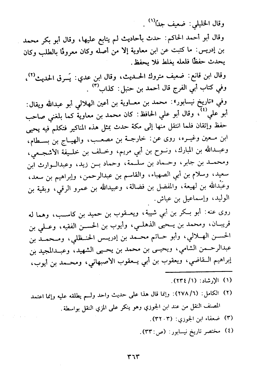 وفي "تاريخ نيسابور ": محمد بن معاوية بن أعين الهلالي أبو عبد الله، ويقال: أبو علي، وقال أبو علي الحافظ: كان محمد بن معاوية كما بلغني صاحب حفظ وإتقان؛ فلما انتقل منها إلى مكة حدث بمثل هذه المناكير فتكلم فيه يحيى بن معين وغيره،