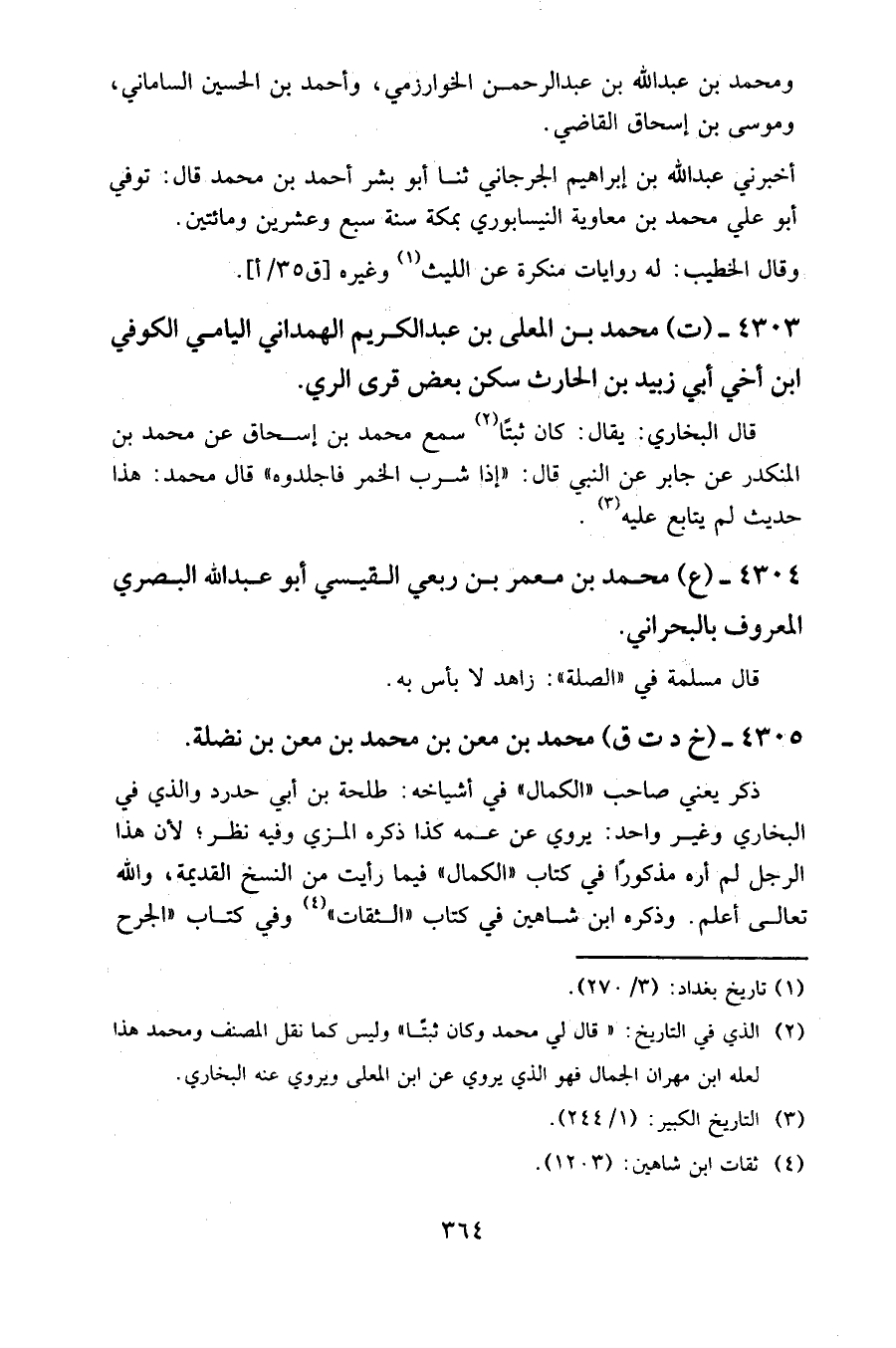 4303 - (ت) محمد بن المعلى بن عبد الكريم الهمداني اليامي الكوفي ابن أخي أبي زبيد بن الحارث سكن بعض قرى الري.