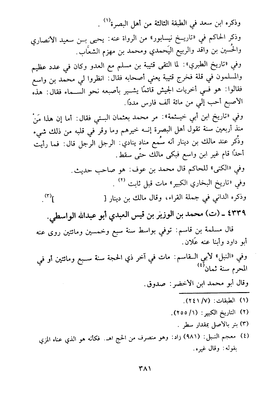 4339- (ت) محمد بن الوزير بن قيس العبدي أبو عبد الله الواسطي.