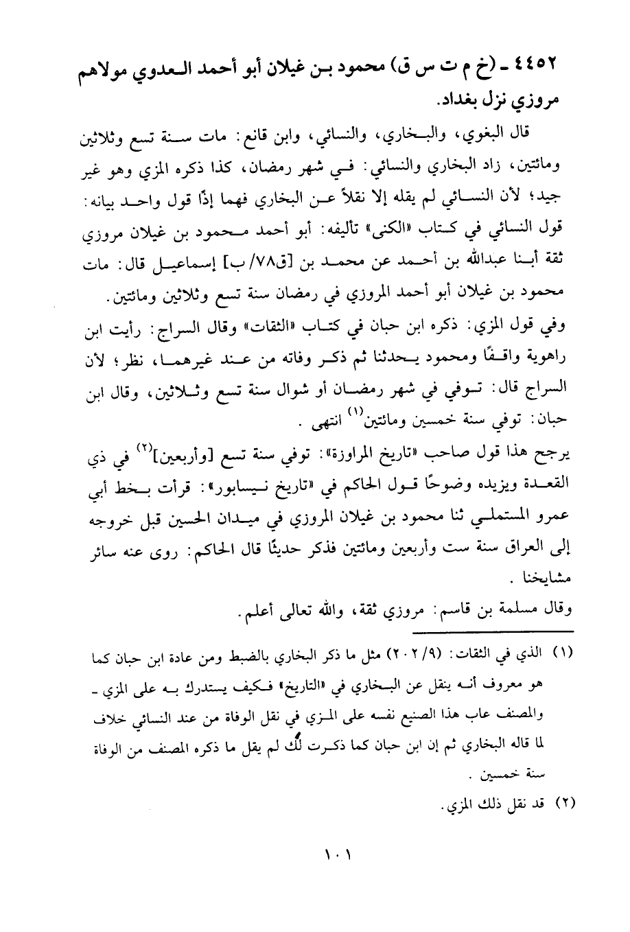4452 - (خ م ت س ق) محمود بن غيلان، أبو أحمد العدوي مولاهم، مروزي نزل بغداد.