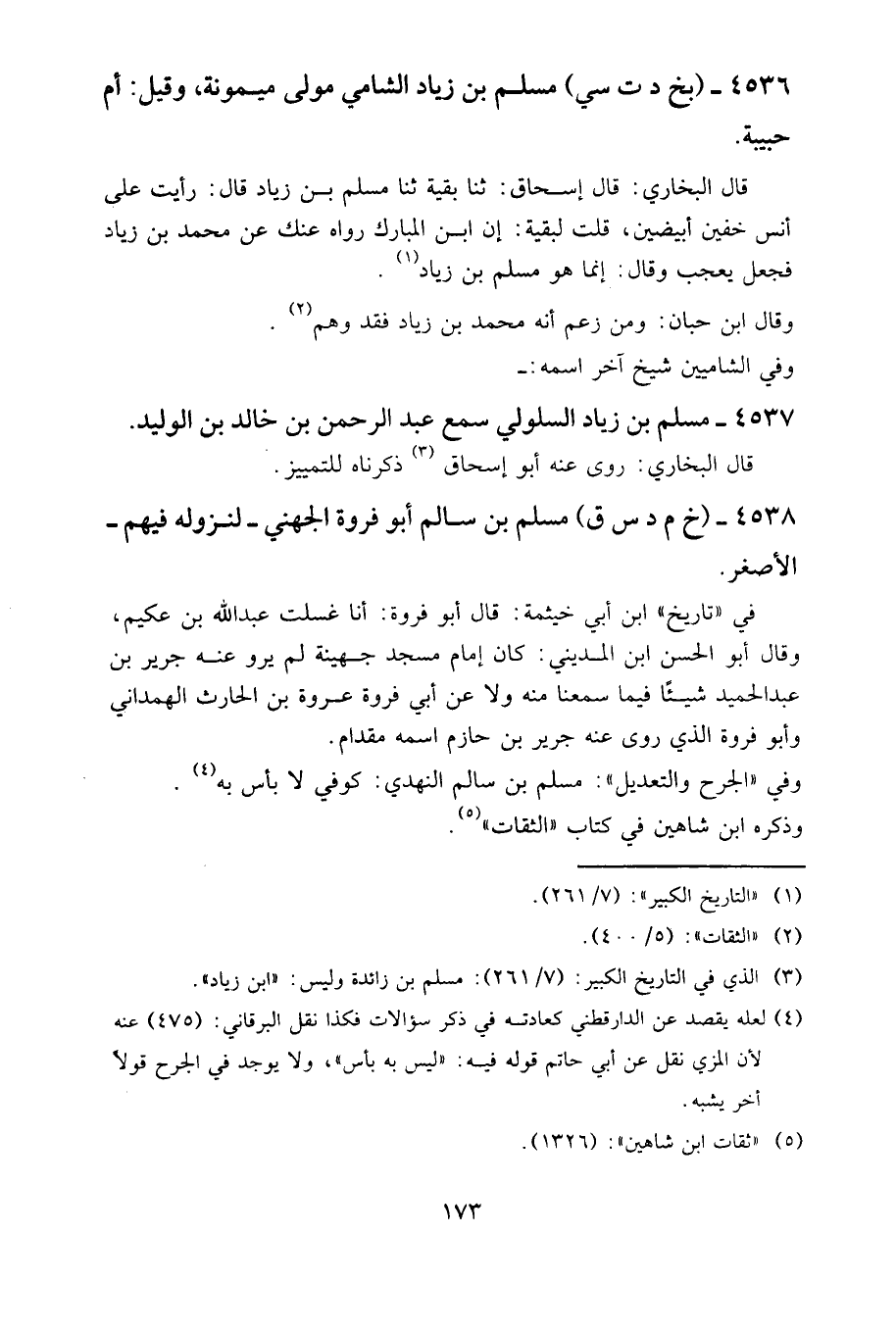 4537- مسلم بن زياد السلولي، سمع عبد الرحمن بن خالد بن الوليد.