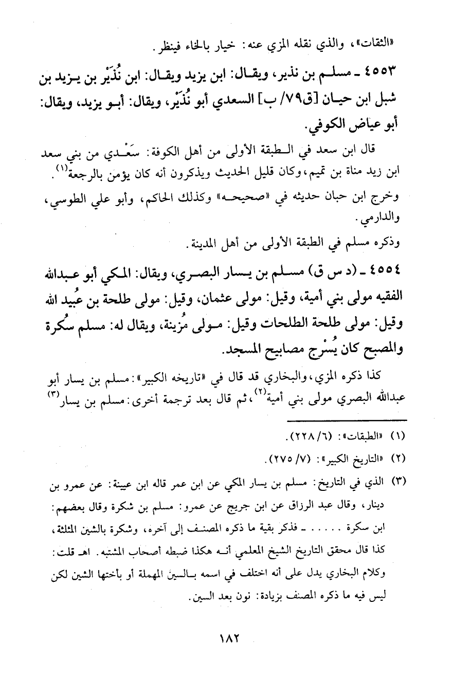 4553 - مسلم بن نذير، ويقال: ابن يزيد، ويقال: ابن نذير بن يزيد بن شبل بن حيان السعدي، أبو نذير، ويقال: أبو يزيد، ويقال: أبو عياض الكوفي.