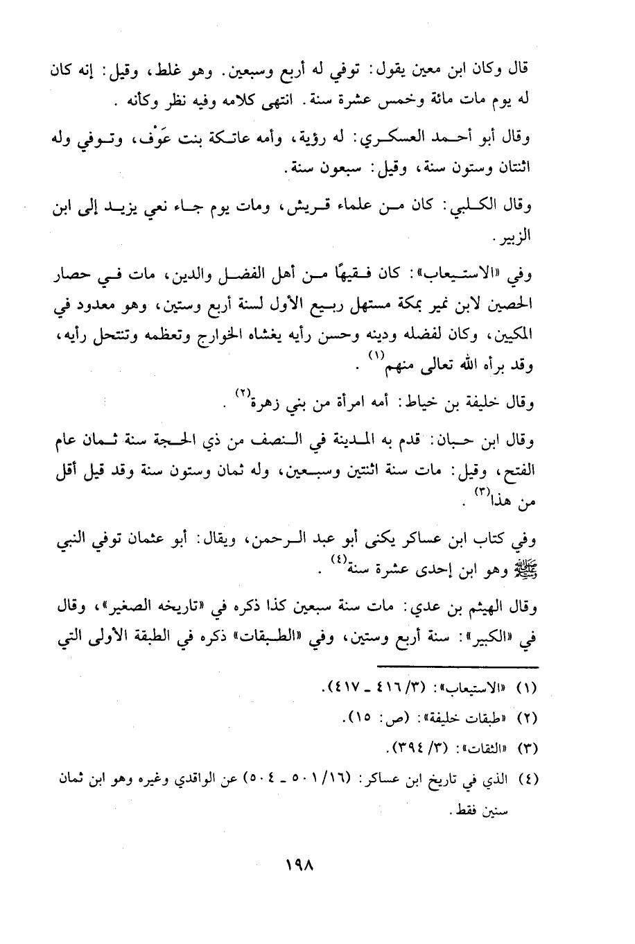 وفي كتاب ابن عساكر: يكنى أبو عبد الرحمن، ويقال: أبو عثمان، توفي النبي صلى الله عليه وسلم وهو ابن إحدى عشرة سنة.