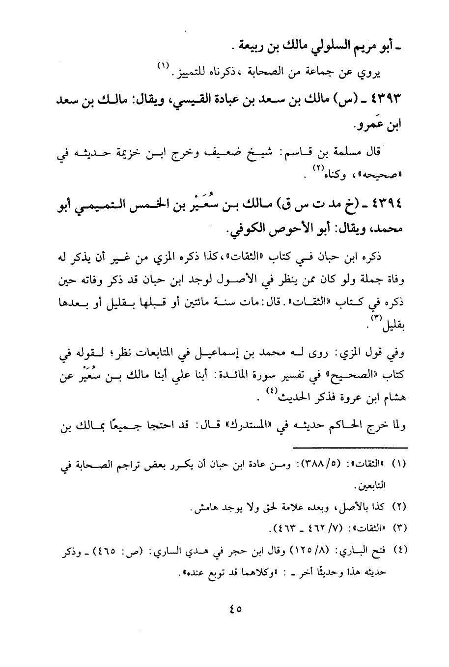 4394- (خ مد ت س ق) مالك بن سعير بن الخمس التميمي، أبو محمد، ويقال: أبو الأحوص الكوفي.