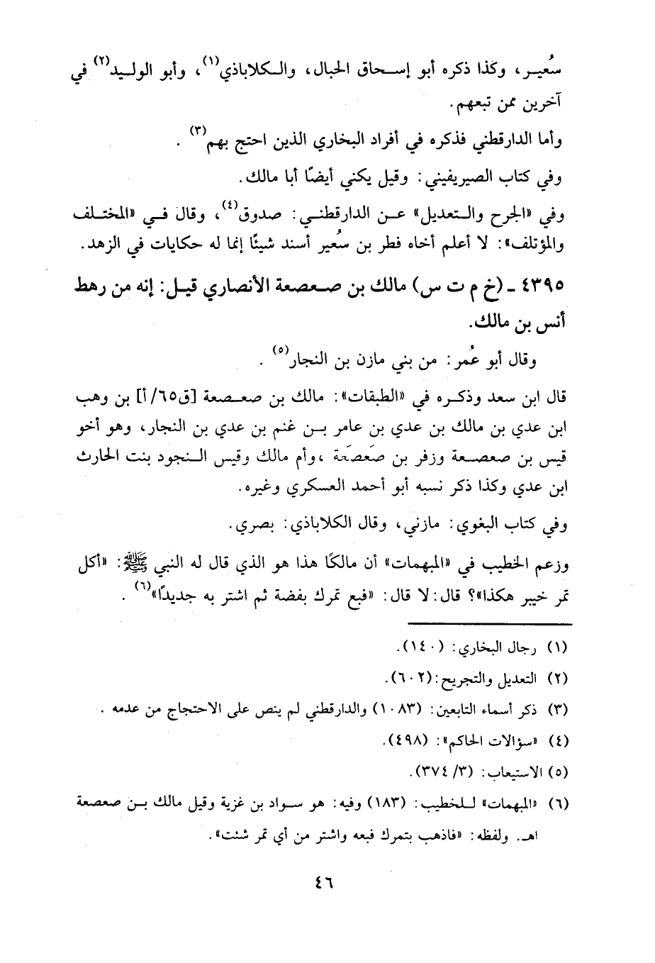 4395- (خ م ت س) مالك بن صعصعة الأنصاري، قيل: إنه من رهط أنس بن مالك.