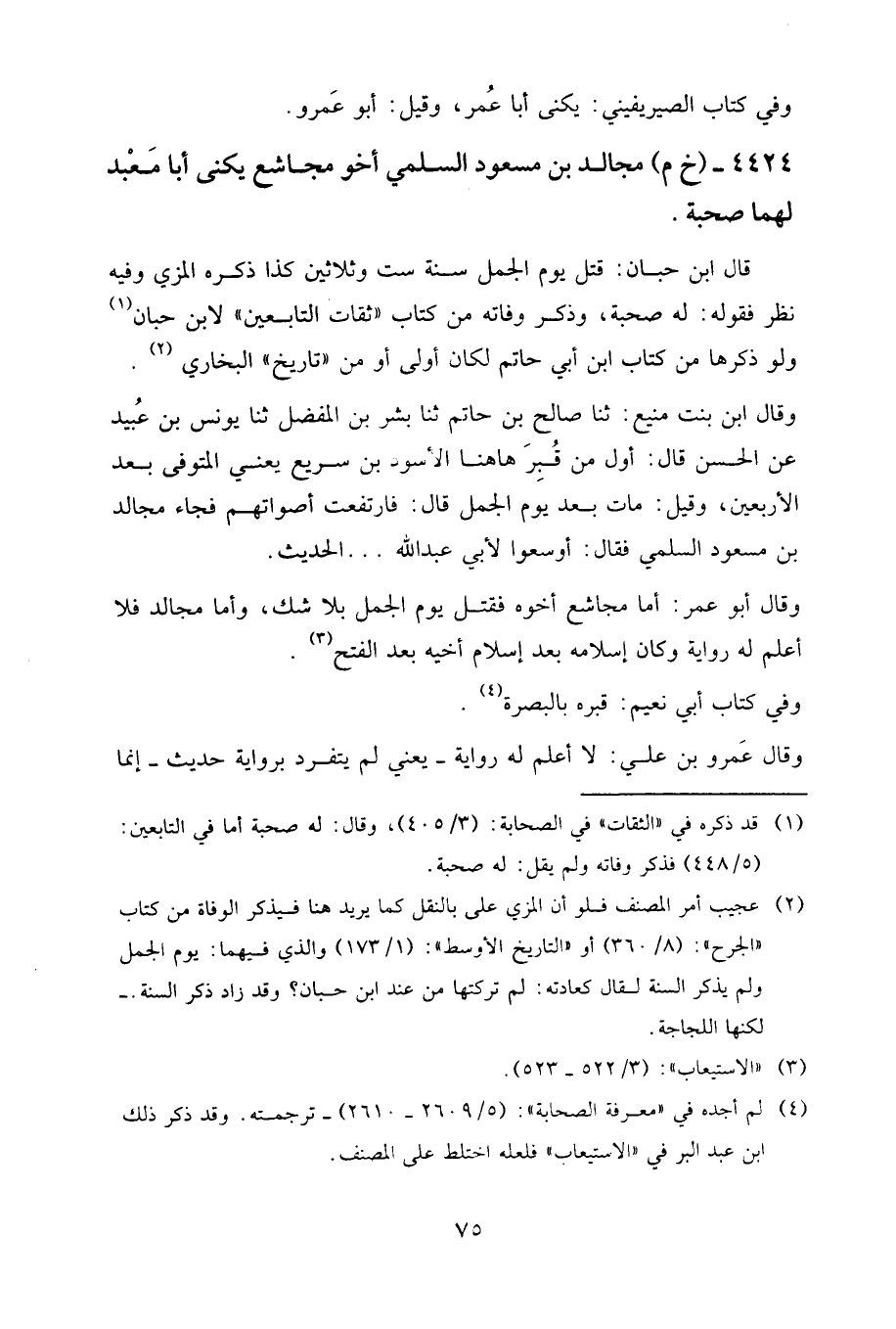 4424- (خ م) مجالد بن مسعود السلمي، أخو مجاشع، يكنى أبا معبد، لهما صحبة.