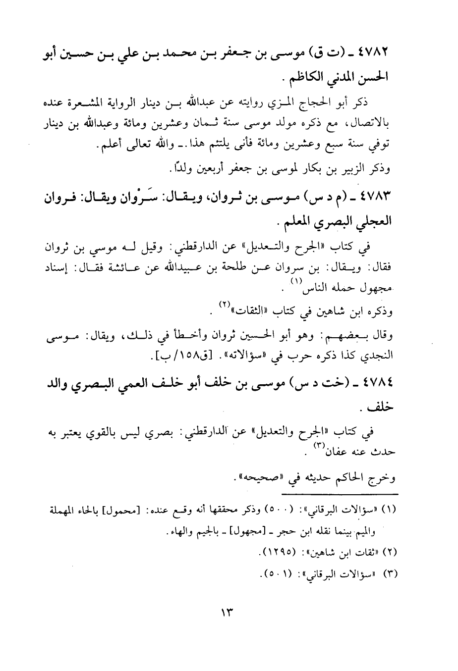 4782 - (ت ق) موسى بن جعفر بن محمد بن علي بن حسين، أبو الحسن المدني الكاظم.