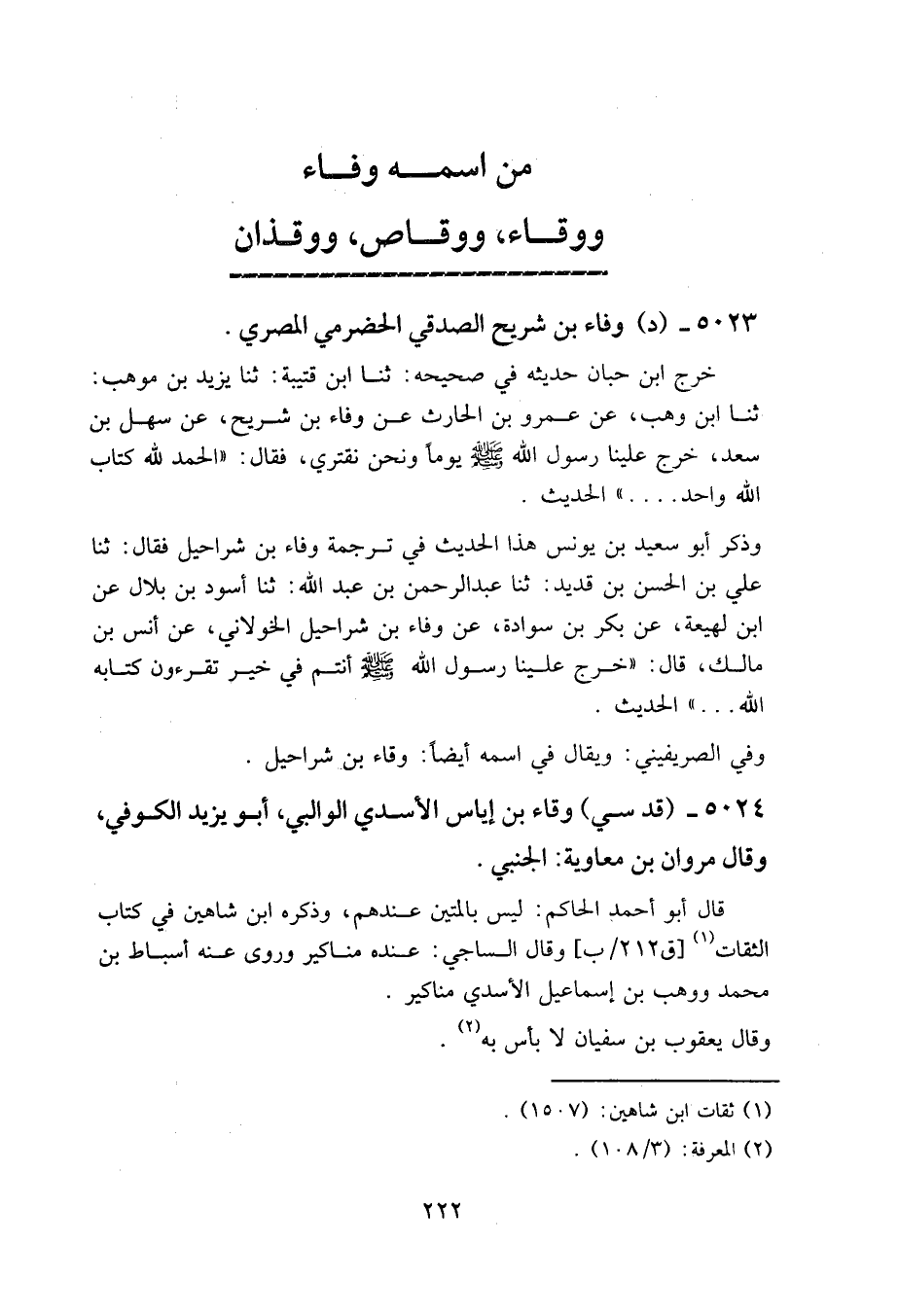 5023 - (د) وفاء بن شريح الصدقي الحضرمي المصري.