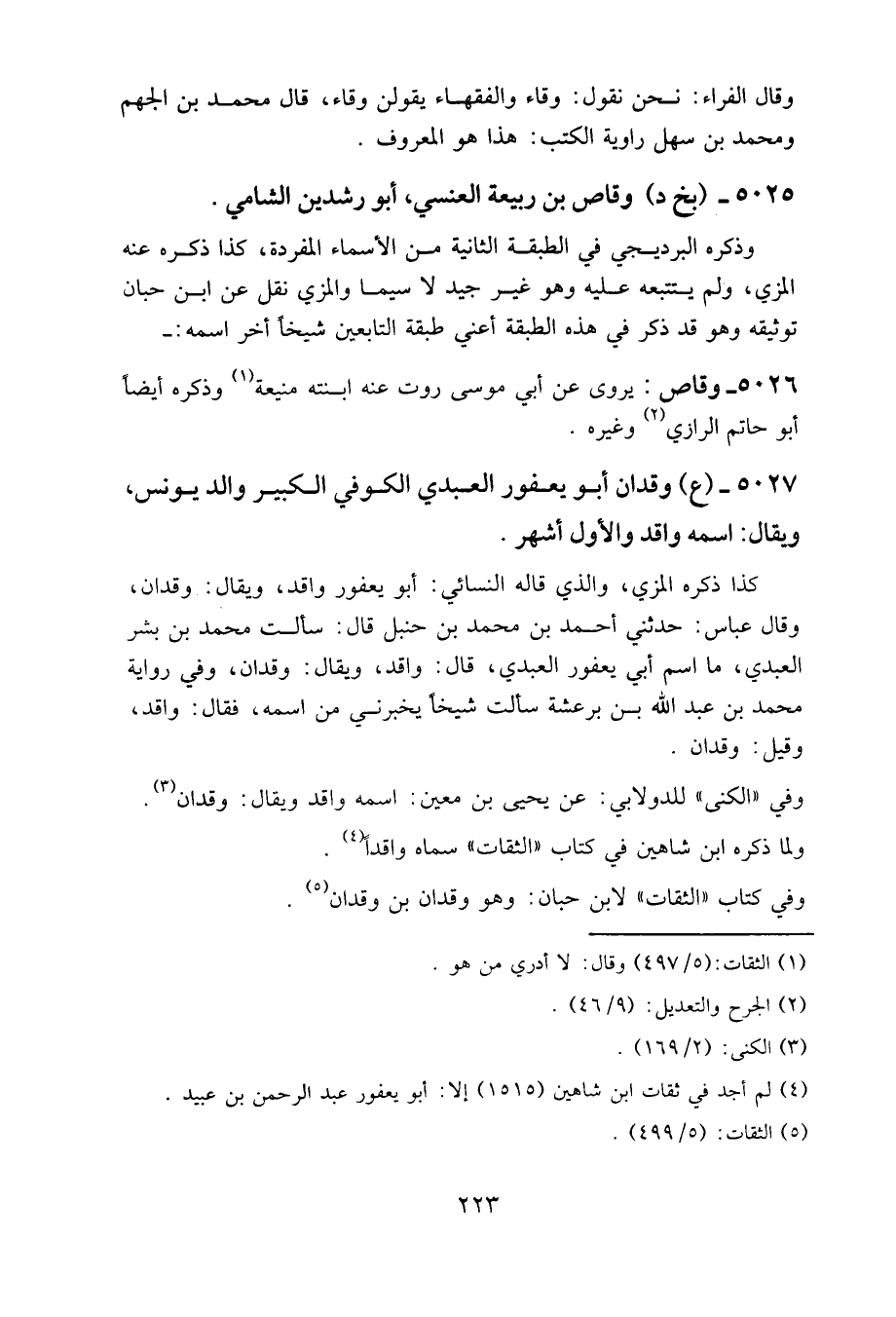 5027- (ع) وقدان أبو يعفور العبدي الكوفي الكبير، والد يونس، ويقال: اسمه واقد، والأول أشهر.