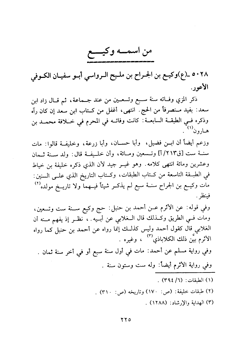5028- (ع) وكيع بن الجراح بن مليح الرؤاسي، أبو سفيان الكوفي الأعور.