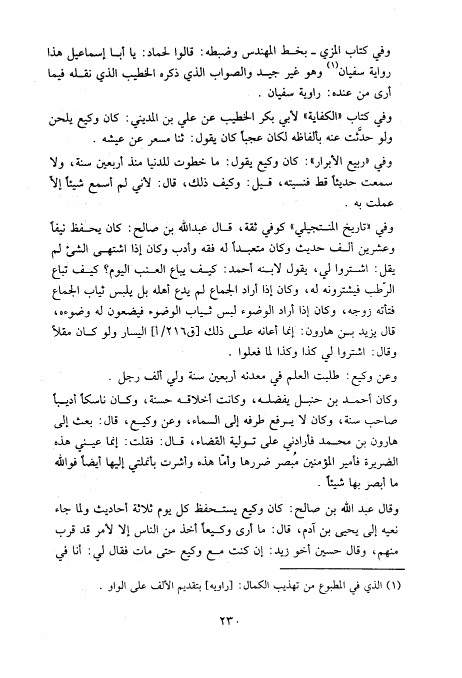 وفي كتاب المزي بخط المهندس وضبطه: قالوا لحماد: يا أبا إسماعيل، هذا رواية سفيان، وهو غير جيد، والصواب الذي ذكره الخطيب الذي نقله فيما أرى من عنده: راوية سفيان.