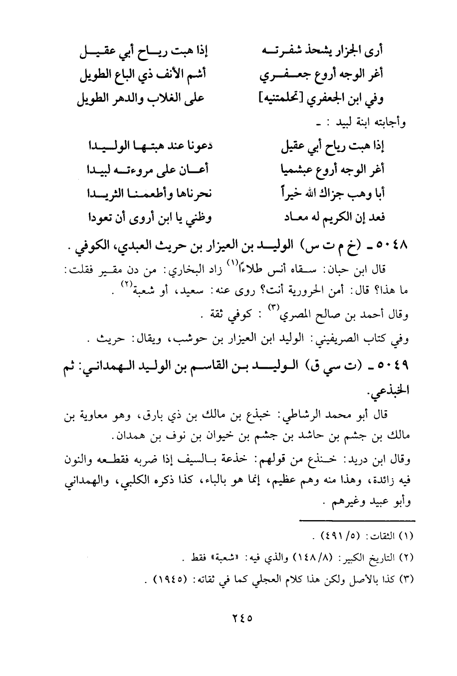 5049- (ت سي ق) الوليد بن القاسم بن الوليد الهمداني: ثم الخبذعي.