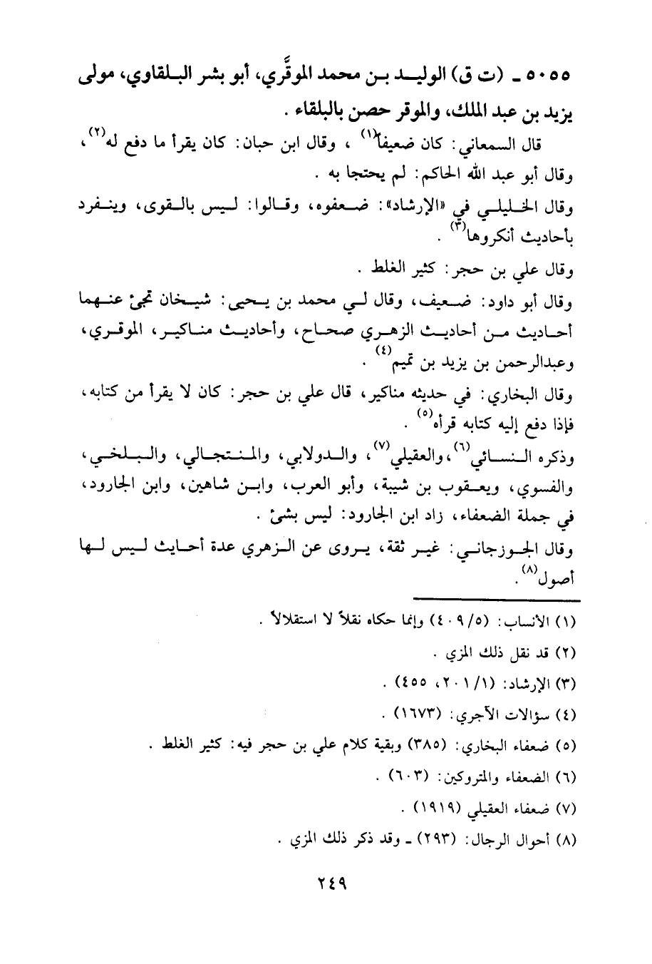 5055- (ت ق) الوليد بن محمد الموقري، أبو بشر البلقاوي، مولى يزيد بن عبد الملك، والموقر: حصن بالبلقاء.