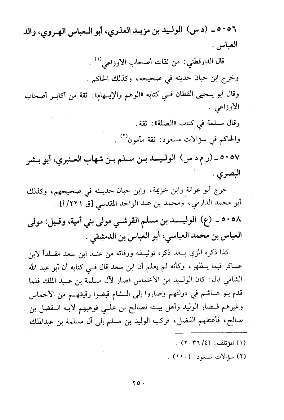 5058- (ع) الوليد بن مسلم القرشي، مولى بني أمية، وقيل: مولى العباس بن محمد العباسي، أبو العباس الدمشقي.