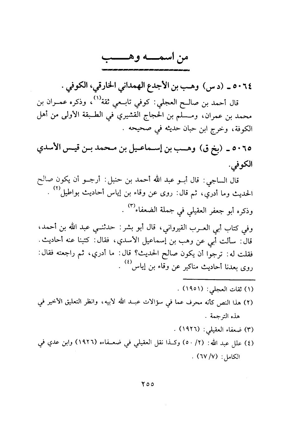 5065- (بخ ق) وهب بن إسماعيل بن محمد بن قيس الأسدي الكوفي.