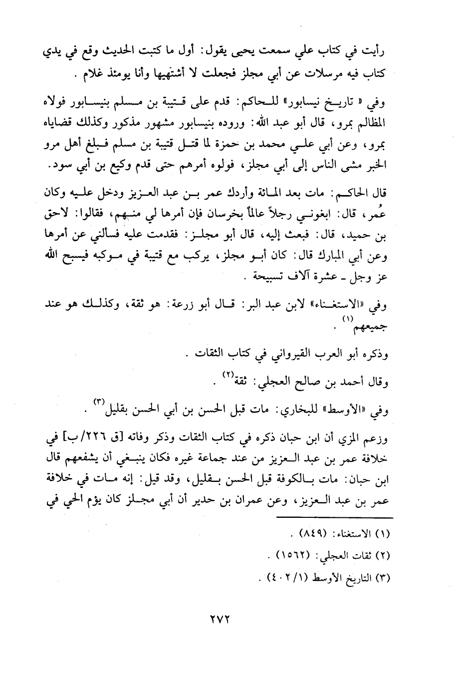 وزعم المزي أن ابن حبان ذكره في كتاب "الثقات"، وذكر وفاته [ق226/ب] في خلافة عمر بن عبد العزيز من عند جماعة غيره، فكان ينبغي أن يشفعهم: