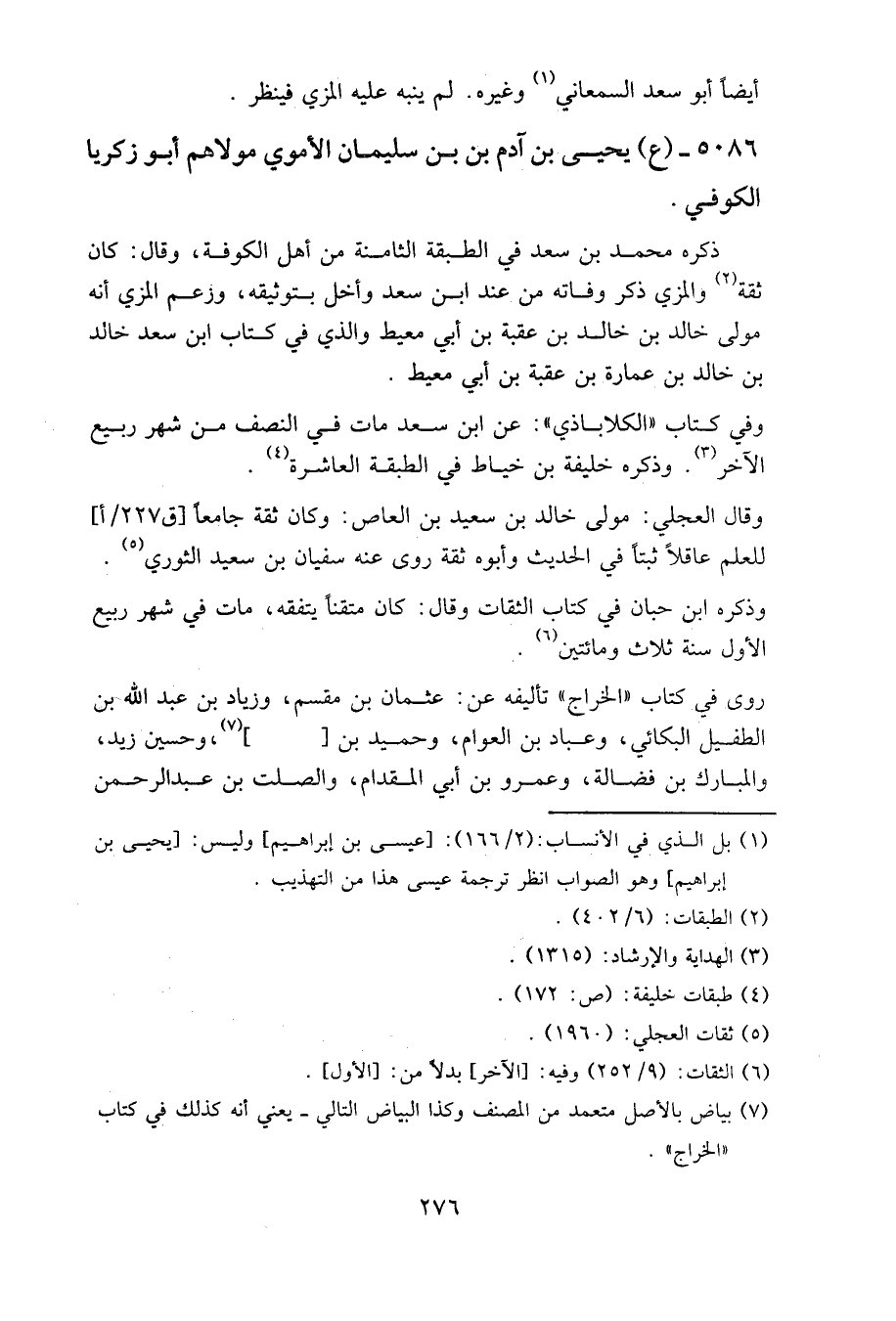 5086- (ع) يحيى بن آدم بن بن سليمان الأموي مولاهم أبو زكريا الكوفي.
