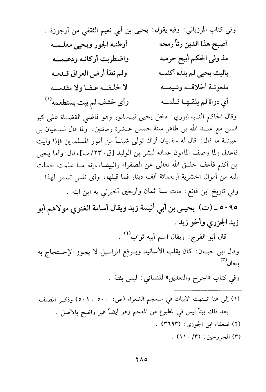 وفي كتاب المرزباني: وفيه يقول يحيى بن أبي نعيم الثقفي من أرجوزة: