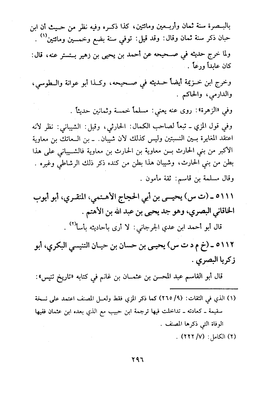 5112 - (خ م د ت س) يحيى بن حسان بن حيان التنيسي البكري، أبو زكريا البصري.
