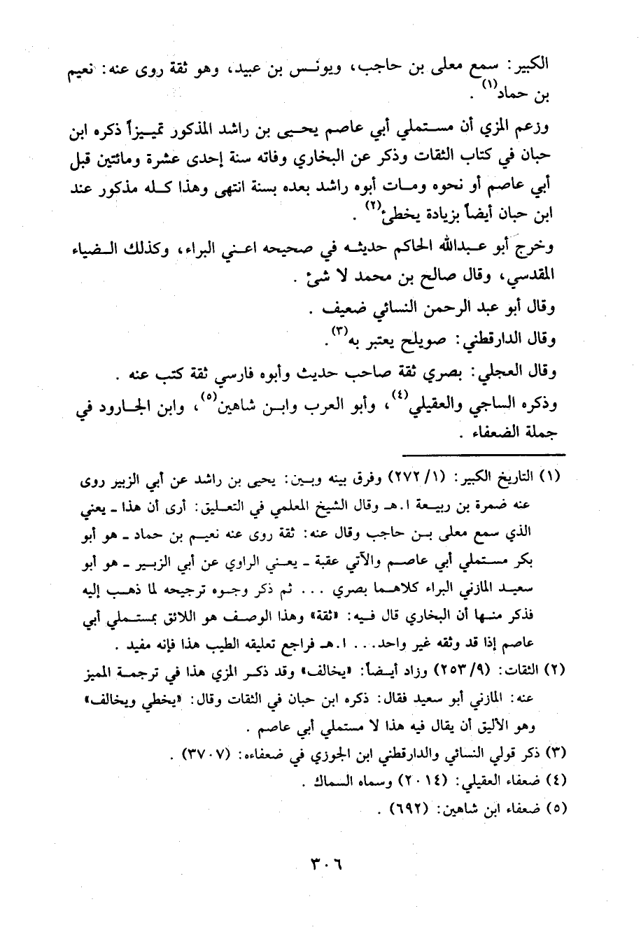 الكبير: سمع معلى بن حاجب، ويونس بن عبيد، وهو ثقة، روى عنه: نعيم بن حماد.