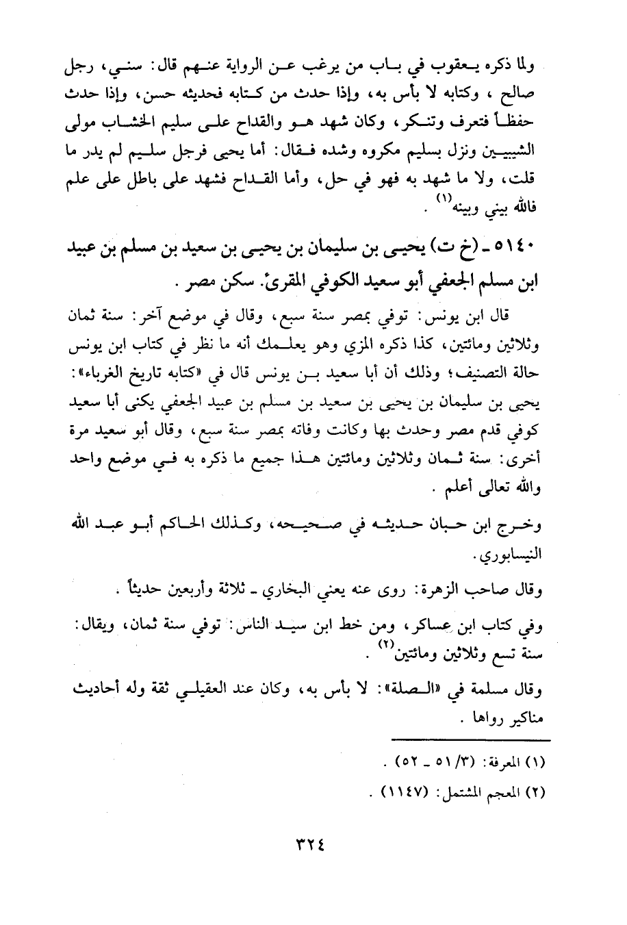 5140- (خ ت) يحيى بن سليمان بن يحيى بن سعيد بن مسلم بن عبيد بن مسلم الجعفي، أبو سعيد الكوفي المقرئ. سكن مصر.