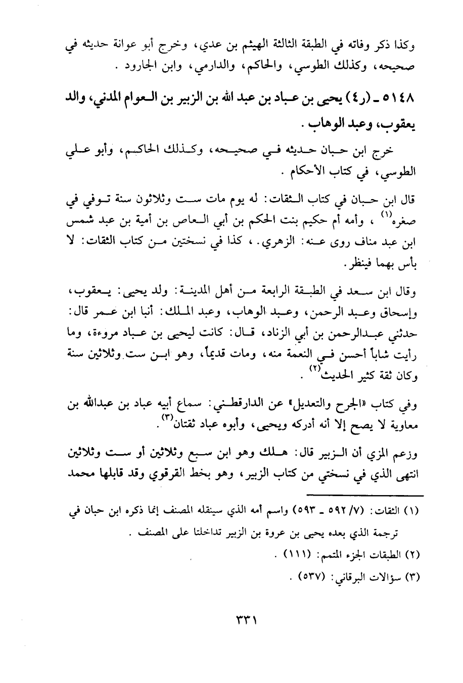 5148- (ر 4) يحيى بن عباد بن عبد الله بن الزبير بن العوام المدني، والد يعقوب وعبد الوهاب.