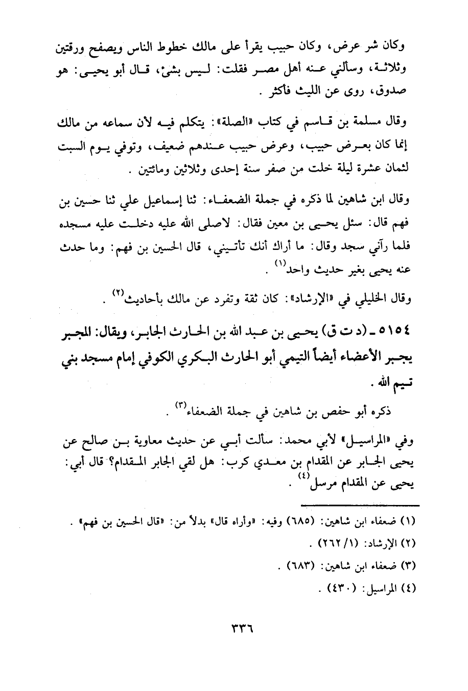 وفي "المراسيل" لأبي محمد: سألت أبي عن حديث معاوية بن صالح عن يحيى الجابر عن المقدام بن معدي كرب: هل لقي الجابر المقدام؟ قال أبي: يحيى عن المقدام مرسل.